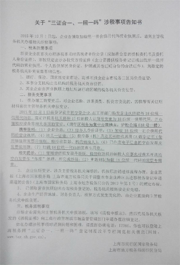 三证合一后涉税事项还很多要处理